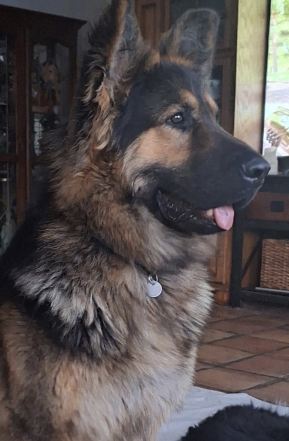 Our Boy: Iorek II is a 130+lb solid large-boned two-year-old GSD with a long black, tan and orange coat. His mellow temperament and affectionate disposition is displayed in his love to snuggle and cuddle. Due to his size, we call him our “Gentle Giant.” Gentle yes, but he is also very protective if need be. Iorek is Penn Hip/OFA certified and will be bred to Khalessi in the spring of 2025.